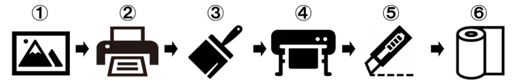 ①Illustrator等のグラフィックデザインソフトウェアでデザインとカットデータを作成します