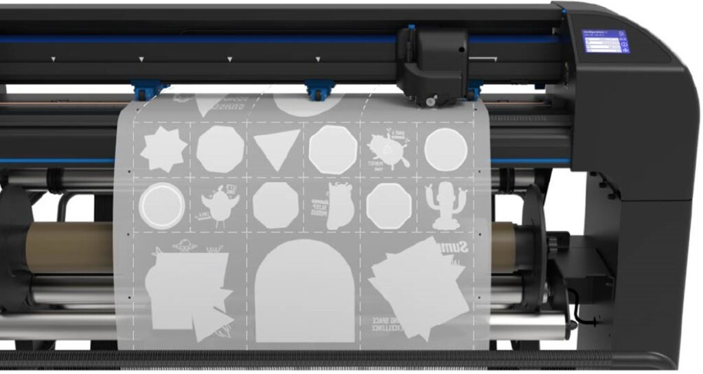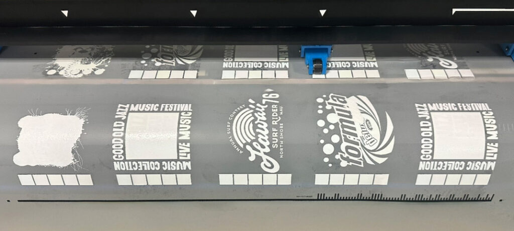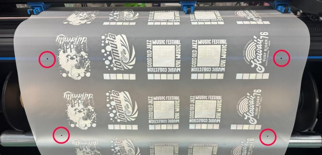 フィルム印刷の際にバーコードとトンボを印字し、当DTFプロッタにセットをすると自動で読み込み、高精度なカットを実現します。(精度保証最大12m)