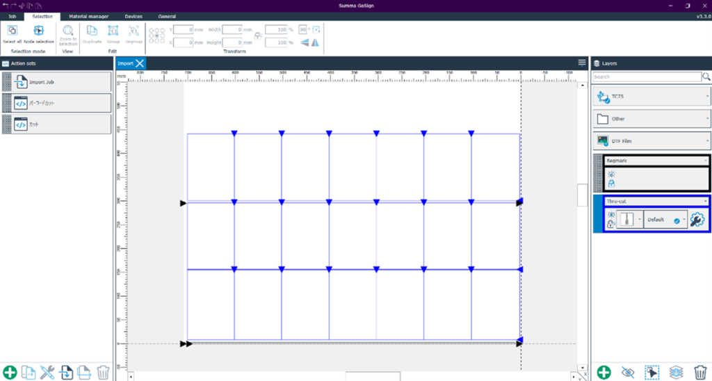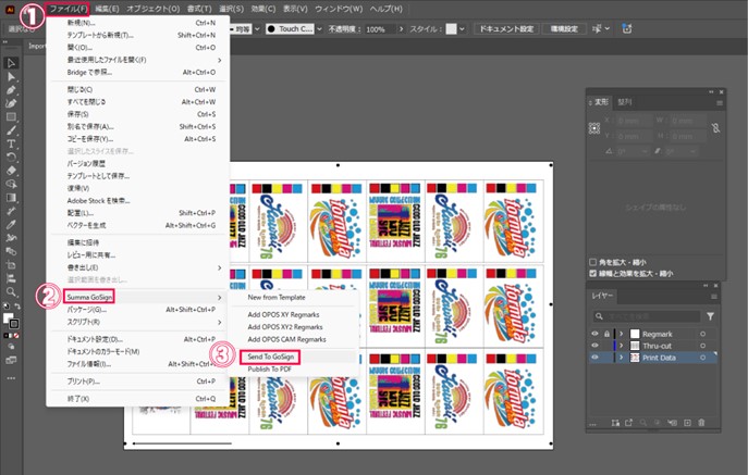 作成したデータにカットラインを設定し、グラフィックデザインソフトウェアからソフトウェア(GO SIGN)へそのままデータを送ることができるので、操作が簡単です。