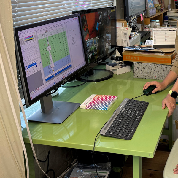 シルクスクリーンでウェアプリントを中心にされながら、ガーメントプリンターや昇華プリンターや刺繍機をを利用されて布地へのプリント業務を幅広く手掛けておられるユーザーさまです。