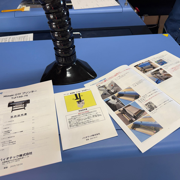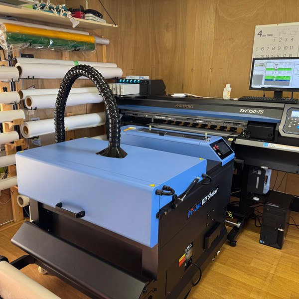 今回は「DTFプリンター ミマキ/TxF150-75」「DTFシェーカー PT-Jet 75cm/S200」「手動式 熱プレス機 PHP-MS405 」を弊社から導入いただきました。